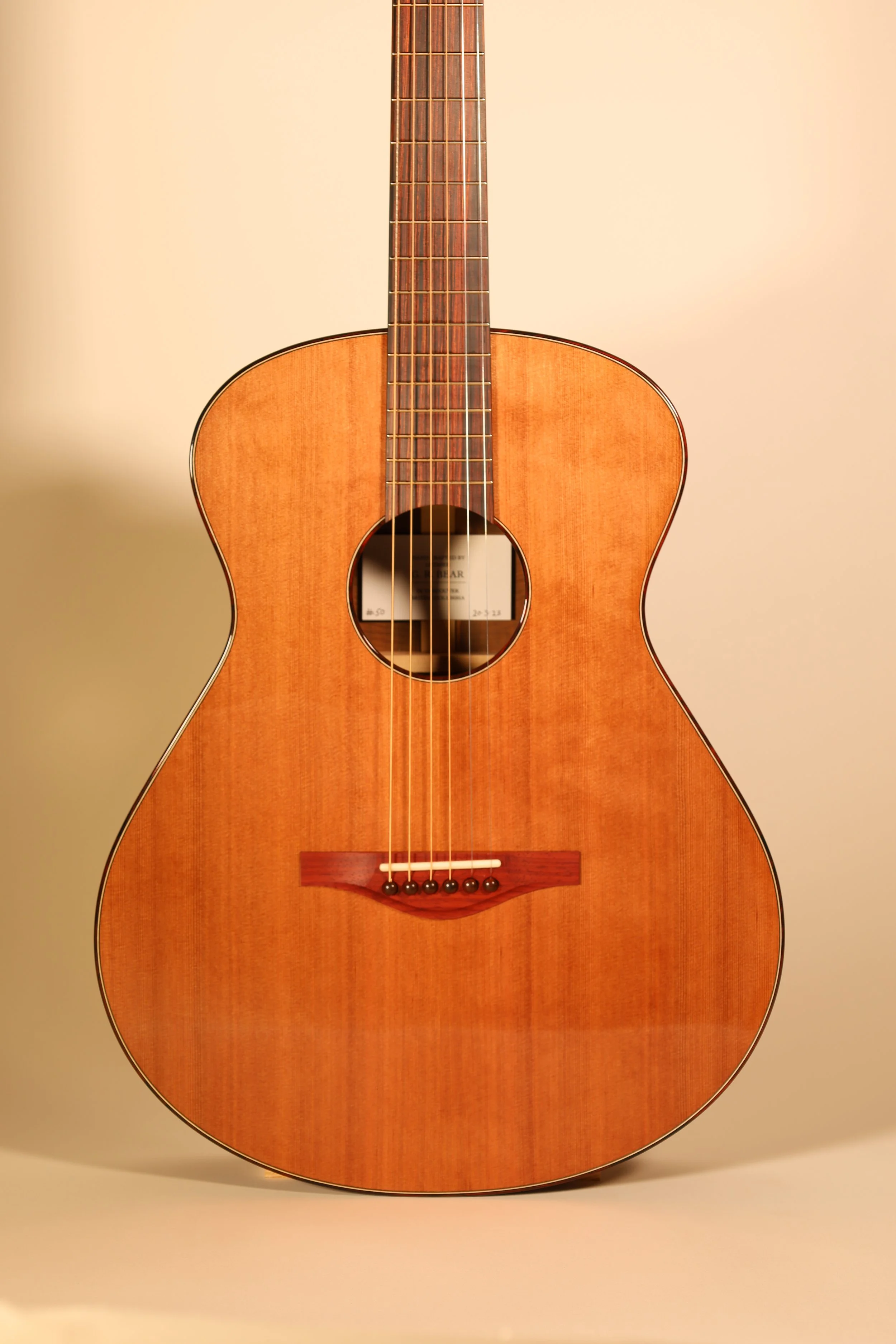 Like all of my steel string guitars the SJ is available in almost any combination of tonewoods and customizable to your specifications. No.50 pictured has a Redwood top, Belah back and sides and Cocobolo fretboard, headplate and bindings. Please reach out to discuss the possabilities.